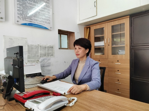 随着电脑信息提示音陆续响起,校园报修服务系统端弹出一条又一条的师生报修信息,统一接单后,林明星按类别将不同报修单派发出去,又联系维修师傅优先去处理紧急的报修工作。林明星的工作细致认真、热情服务师生,赢得了同事和师生的好评,她也先后荣获厦门大学三八红旗手、后勤集团先进个人等荣誉称号。