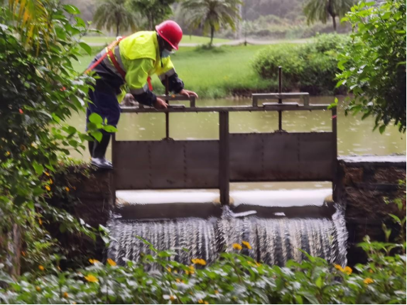 2022年6月11日,漳州校区一直下着暴雨,深夜近24:00,正在值班的维修班组长王志寿接到嘉庚学院资产部值班人员电话,要求高尔夫球场进行紧急开闸泄洪,王志寿立即冲往现场,用手动开闸,由于水位高闸门压力大,需要70-80斤力气才能转动,每次转动一圈需要花近20秒,水闸才能打开一点,一个闸转完要用十几分钟,半个多小时才开好两个闸,把水位泄到安全警戒线,避免了高尔夫球场水域满溢冲出路面,造成生化主楼地下室被淹的安全隐患发生。