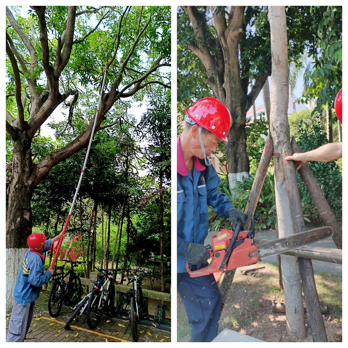 修剪枯枝,加固杉木支撑架
