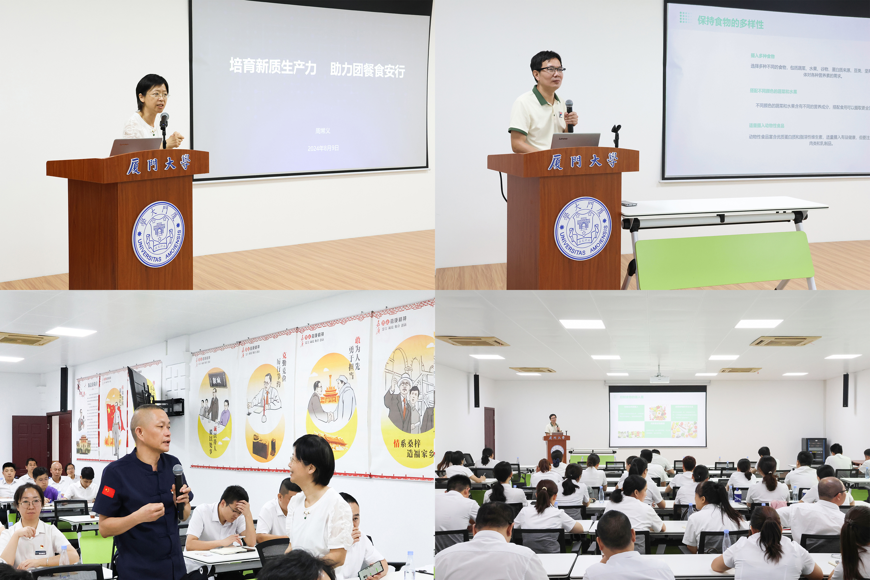 本次培训特别邀请了集美大学海洋食品与生物工程学院副教授、硕士生导师、国家级实验室资质认定评审员、厦门市供厦食品标准委员会专家周常义老师和厦门市智慧在线教育管理有限公司总经理李温生老师分别作《培育新质生产力 助力团餐食安行》和《标杆餐厅营养食谱的分析与推广》为主题的培训讲座。