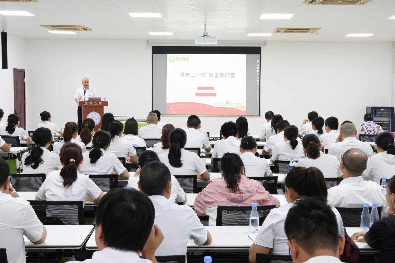 11日下午,罗阳带领大家特别回顾了公司成立二十年的发展脉络与发展历程,复盘了过去二十年中关键节点公司面临的重要考验和取得的丰硕成果,让大家产生了强烈的共鸣,二十年来奋斗过程中有多少酸甜苦辣咸,说到动情处,罗阳一度哽咽,与会老员工们也不禁热泪盈眶。初心不与年俱老,奋斗永似青春时!