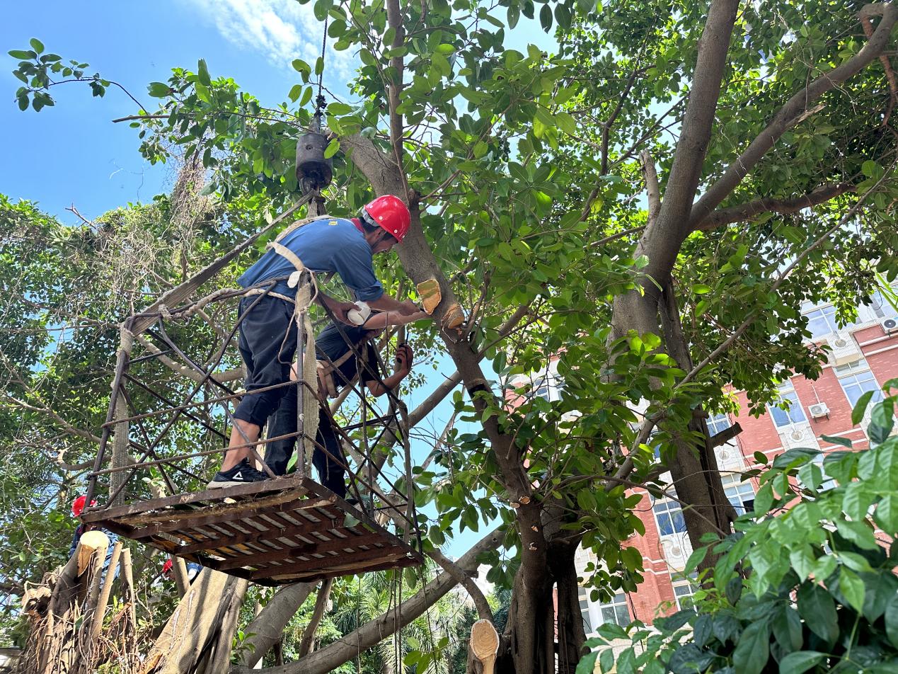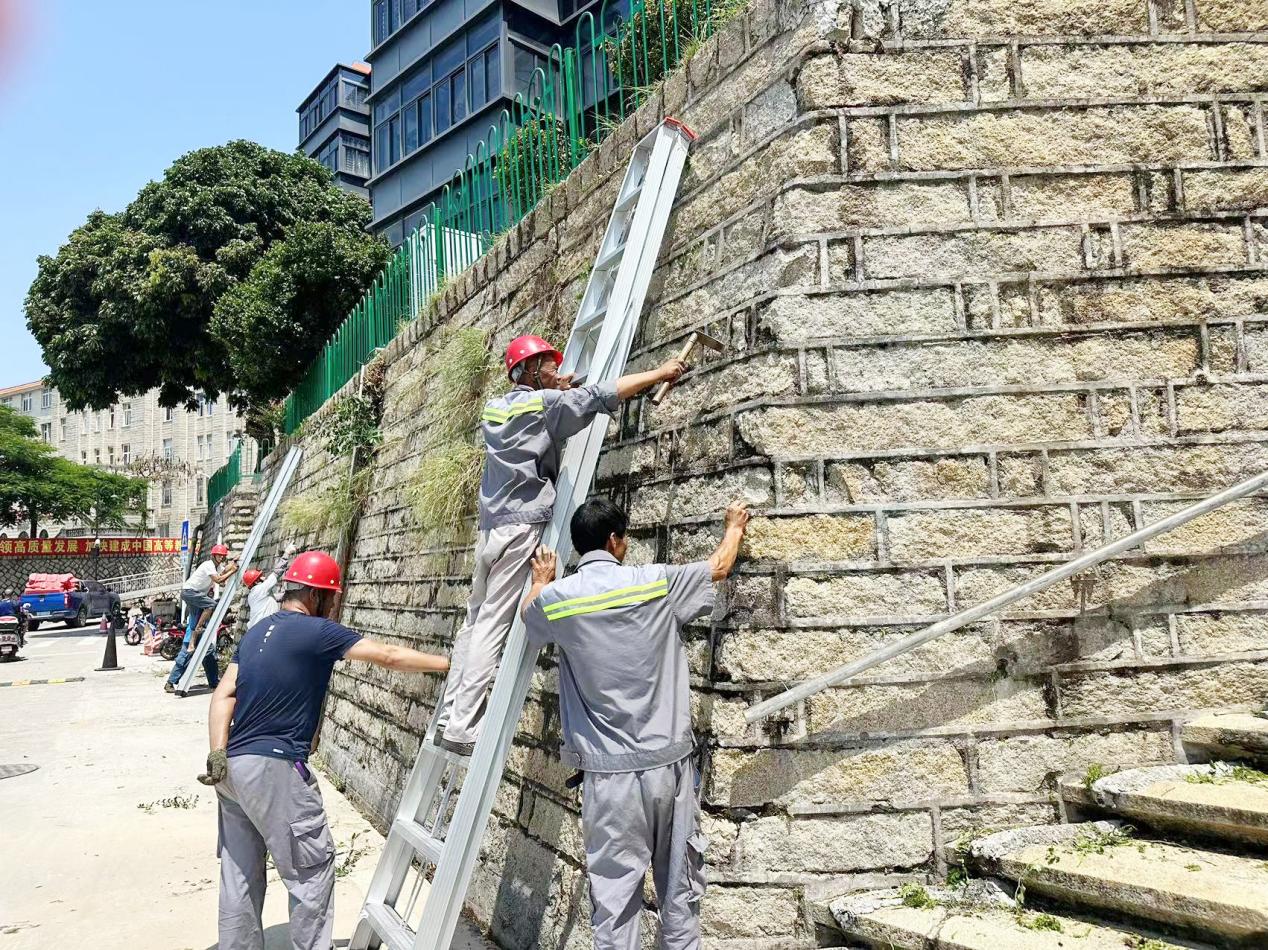 炎炎夏日下,绿化保洁部员工不畏酷暑,对校园内的挡土墙进行细致清理,对鸟榕下的杂草进行拔除,不仅美化了校园环境,也为师生们提供了更加清爽的休憩空间。