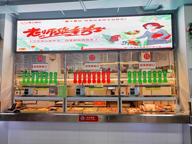 9月10日,适逢第40个教师节,厦门南强后勤服务有限公司的“厦大餐饮”人为弘扬尊师重教的传统,推动劳动教育、感恩教育,公司所服务的学校类餐厅积极营造节日氛围,通过不同形式的布置和互动,为老师们献上最诚挚的敬意与祝福,得到了广大教师职工的一致好评!