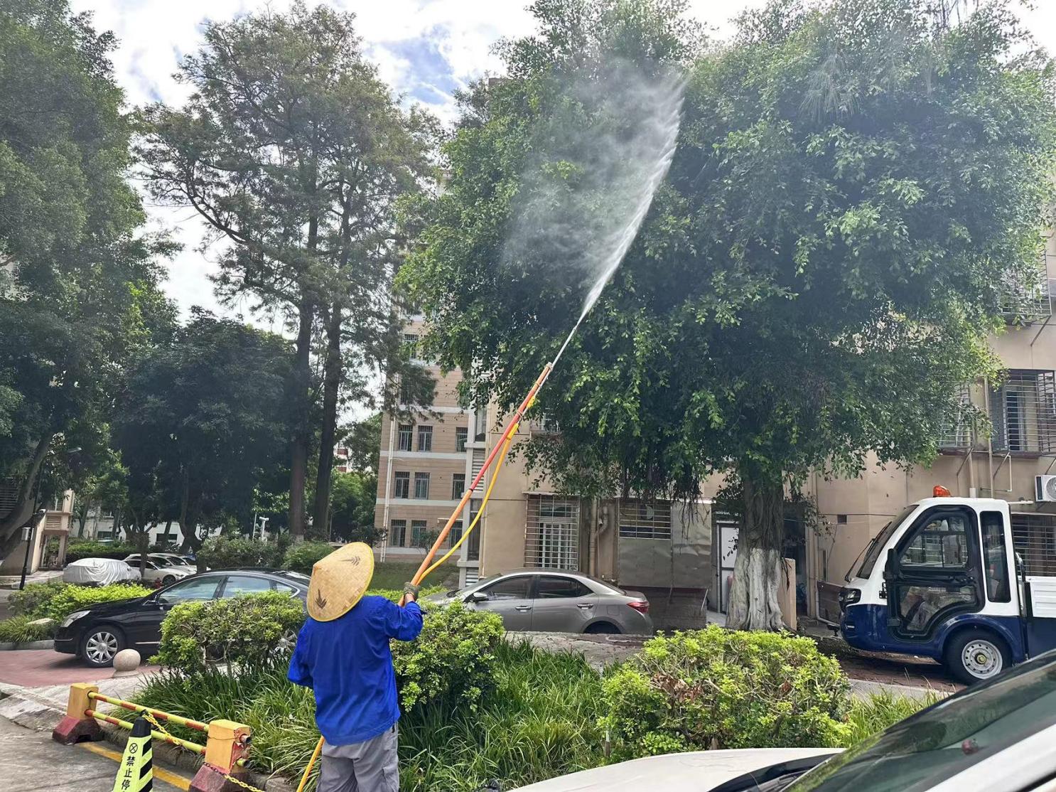 针对此次活动时间紧凑、任务密集、工作面广等特点,全体班组人员振奋精神状态,在绿化提升、卫生保洁等各项服务保障工作坚持高标准、严要求,从9月9日起,部门每天投入79人,对校园灌木、草皮进行全面整形修剪、补植,对公共区域雨水井与排水沟进行清掏,冲洗公共区域垃圾桶、清理芙蓉湖水体垃圾等,保障校园绿、净、美。