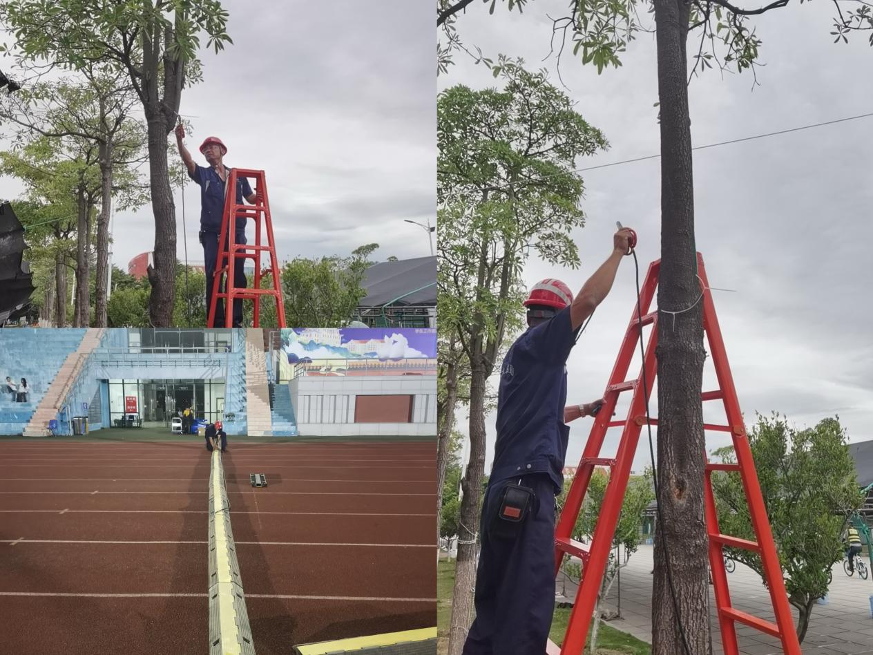 水电管理部加强军训场地照明巡查,做好军训期间场地照明保障工作,确保灯光明亮,训练无阻,并在用水高峰期增开泵房水泵,满足参训人员及校区的用水需求。