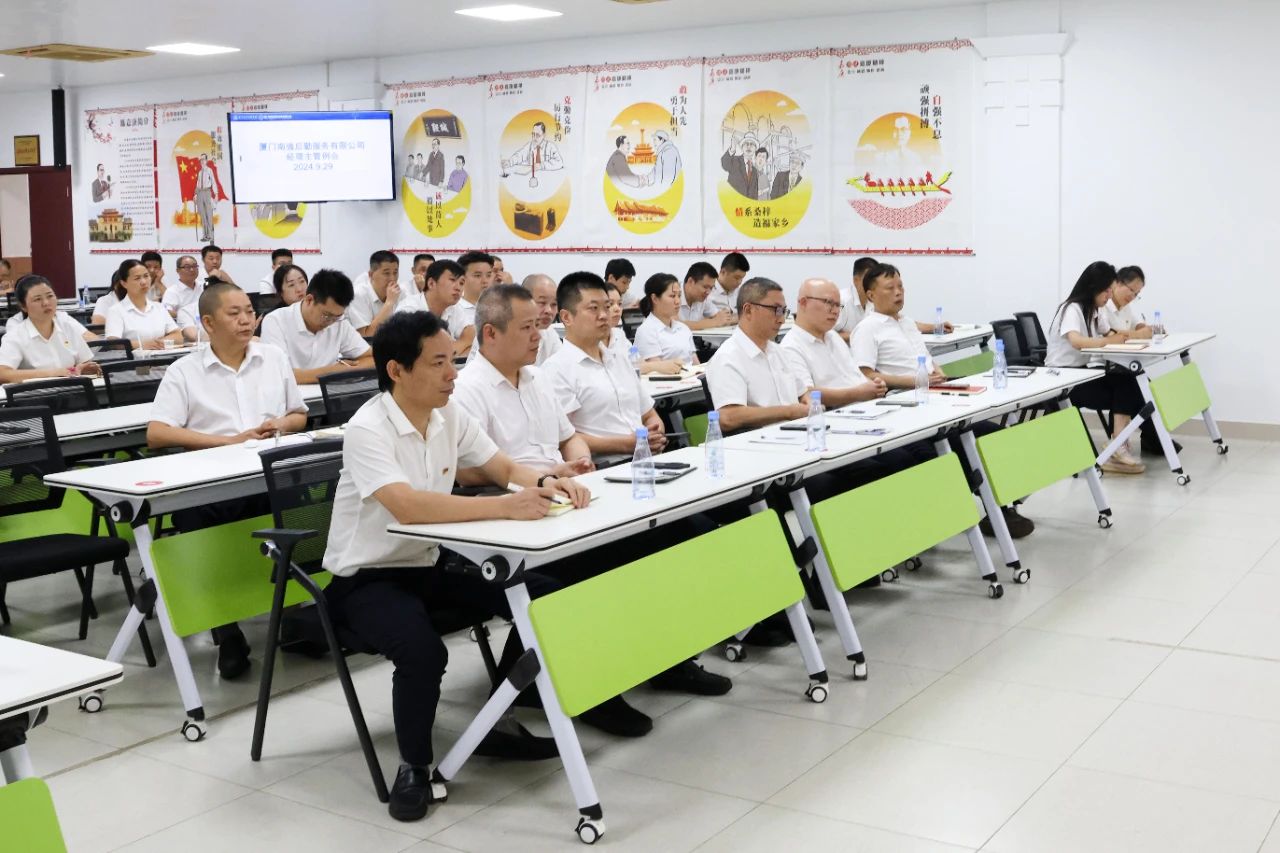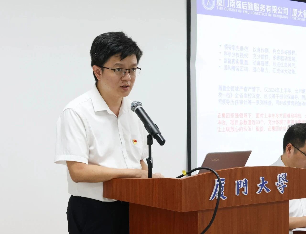 最后,马龙书记作总结发言,他代表集团感谢公司全体员工的辛勤付出与不懈努力,并以“南强后勤,厦大技艺,拼搏有为,再创佳绩”十六个字对公司的发展进行肯定和期许。