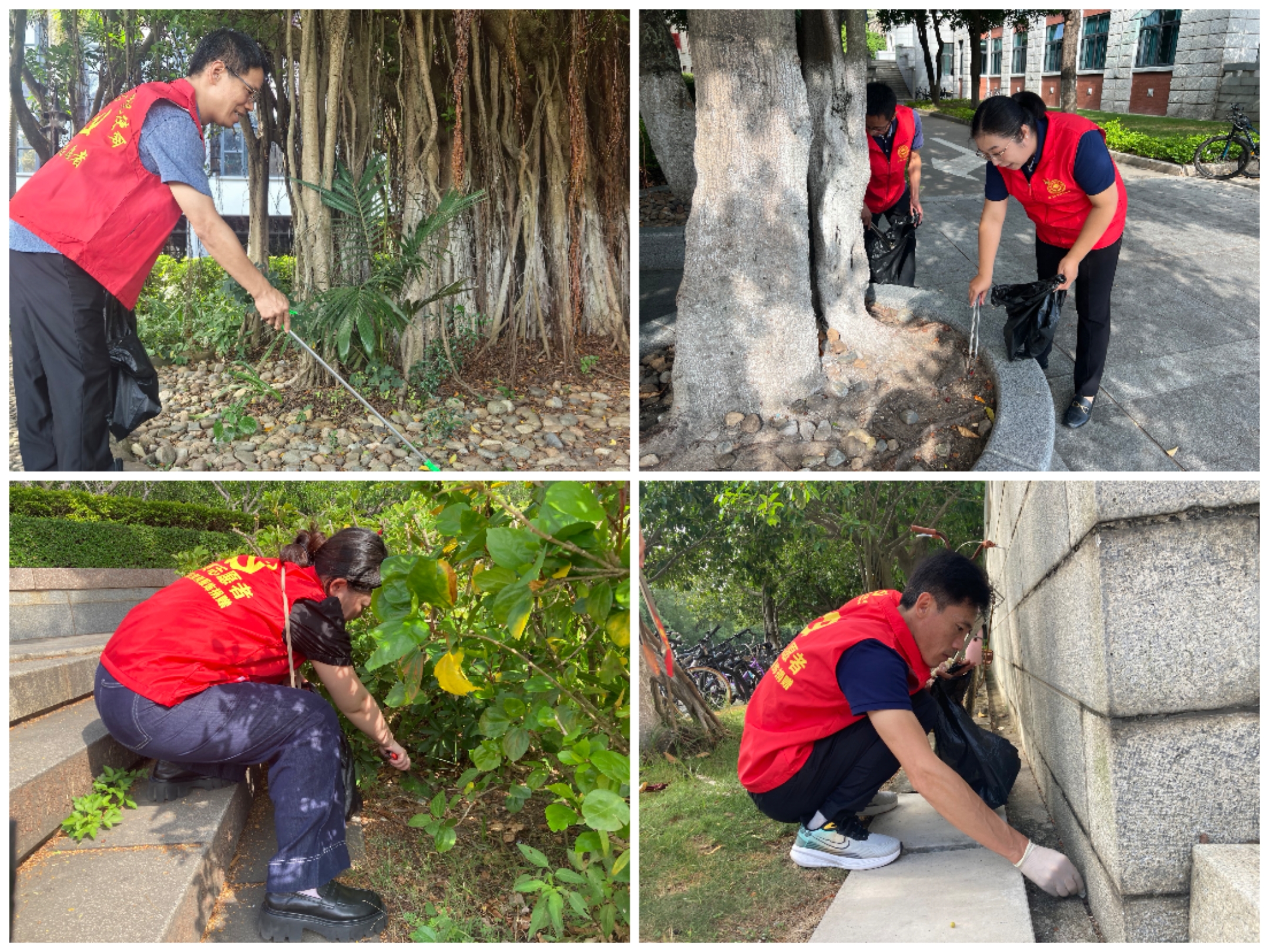 为营造干净、整洁、文明的校园环境,助力陈嘉庚与厦门大学纪念展馆开馆仪式和第三届嘉庚论坛等重要活动的举办,10月17日上午,本部党支部、公寓党支部、物业党支部联合开展共建志愿活动,组织支部党员、入党积极分子捡拾校园主干道烟头、白色垃圾。集团党委副书记、纪委书记邓泽君参加了此次活动。