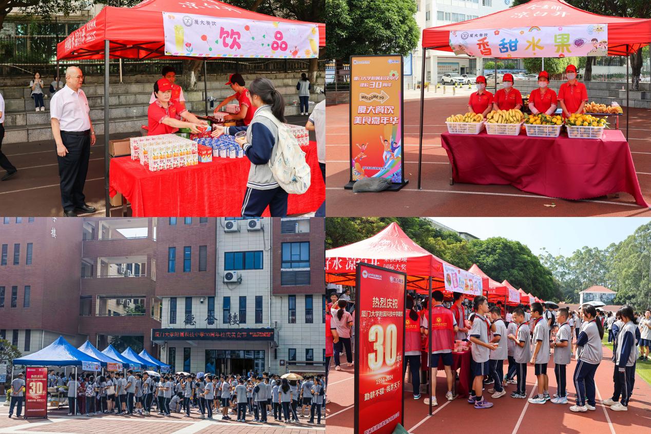 10月18日,厦门大学附属科技中学喜迎建校30周年。校庆当天,学校的思明校区与翔安校区均举办了隆重的庆祝大会,校园内所行之处,尽洋溢着欢乐的气氛。作为多年友好合作、携手并进的餐饮服务方——厦门南强后勤服务有限公司(厦大餐饮)高度重视学校的校庆供餐保障任务,筹备工作从菜谱设计制定、原料备品采购、用餐流程安排到宣传氛围营造、餐厅礼仪服务等,事无巨细,认真推敲、精心筹备,以高标准、严要求的优质餐饮服务,全力确保两场校园的美食节服务保障工作圆满完成。