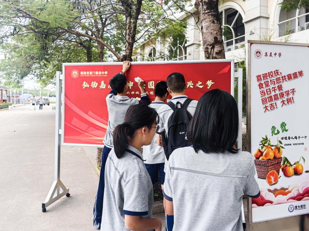 餐厅团队精心策划,特别设置的感恩心语墙,通过“亲爱的母校,我想对您说”活动展板,引得嘉庚学子们纷纷驻足签名,深情书写对学校的美好祝福,表达对嘉庚先生拳拳爱国之心的敬仰。