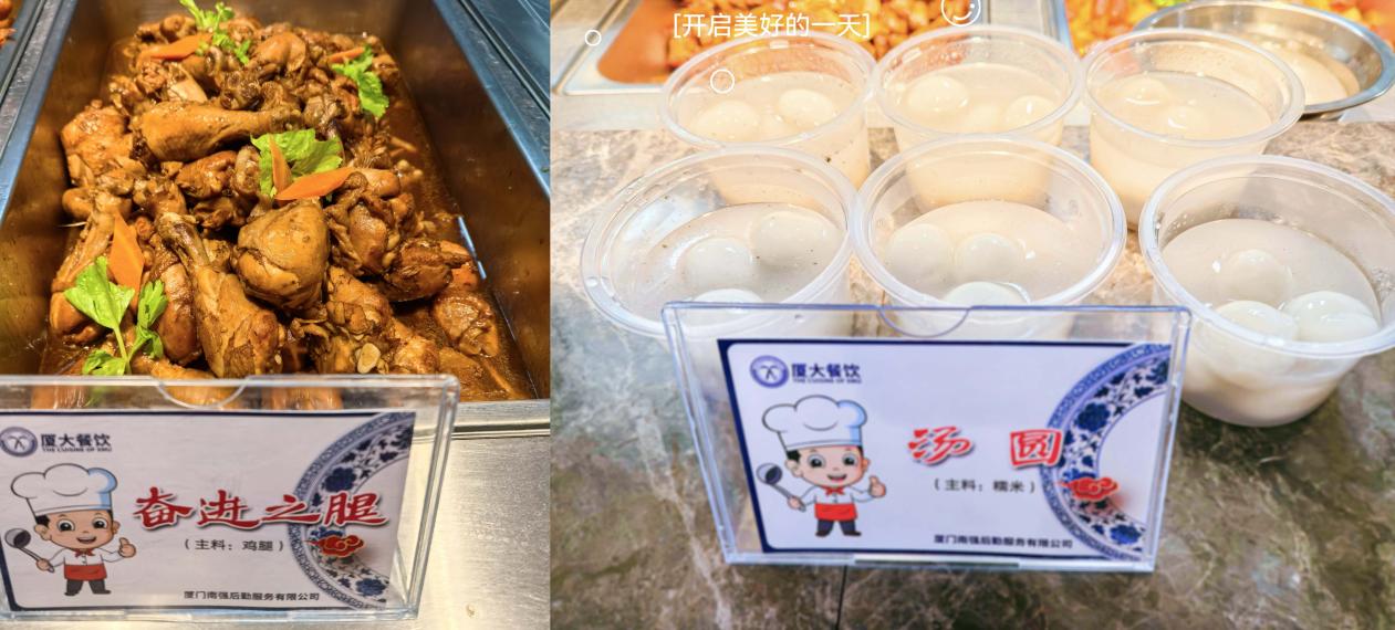 暖心饱腹,再启新程。“厦大餐饮”厦门南强后勤服务有限公司通过融入嘉庚元素、厦大情怀,将菜品文化跃然其间,点滴间无不彰显着“嘉庚精神”世代流芳和“厦大餐饮”人的文化润心。今后,公司将继续以“用心做菜,用爱服务”为服务宗旨,为校园师生提供更加热情周到的服务,全力保障餐饮服务品质,不断提升师生的安全感、获得感和幸福感。