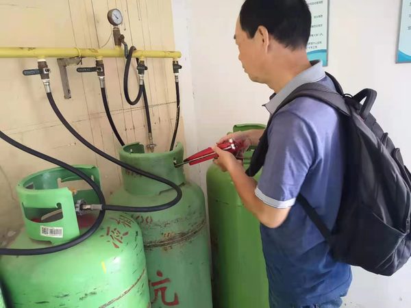 结合2021年6月全国安全生产月“落实安全责任,推动安全发展”的主题,根据餐厅自查情况,随机抽查使用天然气、煤气的餐厅,实地查看餐厅燃气管道、煤气房等,询问餐厅负责人燃气设施运行等情况,要求餐厅负责人必须牢固树立红线意识,把好安全生产关。