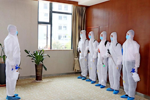自新冠疫情发生后,翔安校区物业部全体投身防控一线,做到疫情防控和物业服务“两不误”,严格按照学校要求执行各项防控工作,担负着出入人员的管控、测温登记、公共区域消毒等任务,还专门成立了一支14人全副“武装”的防疫小分队,24小时待岗值守,专门负责校区内发现的发热人员所到之处消毒工作,为师生健康安全筑起坚实的防护墙。截止2021年1月共使用84消毒液1000公斤,发放口罩23000个。
