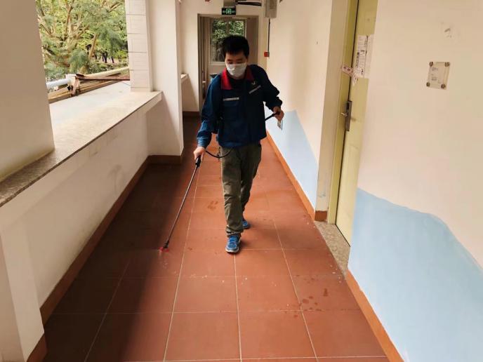 清理学生宿舍环境,清洗、消杀楼栋公共区域
