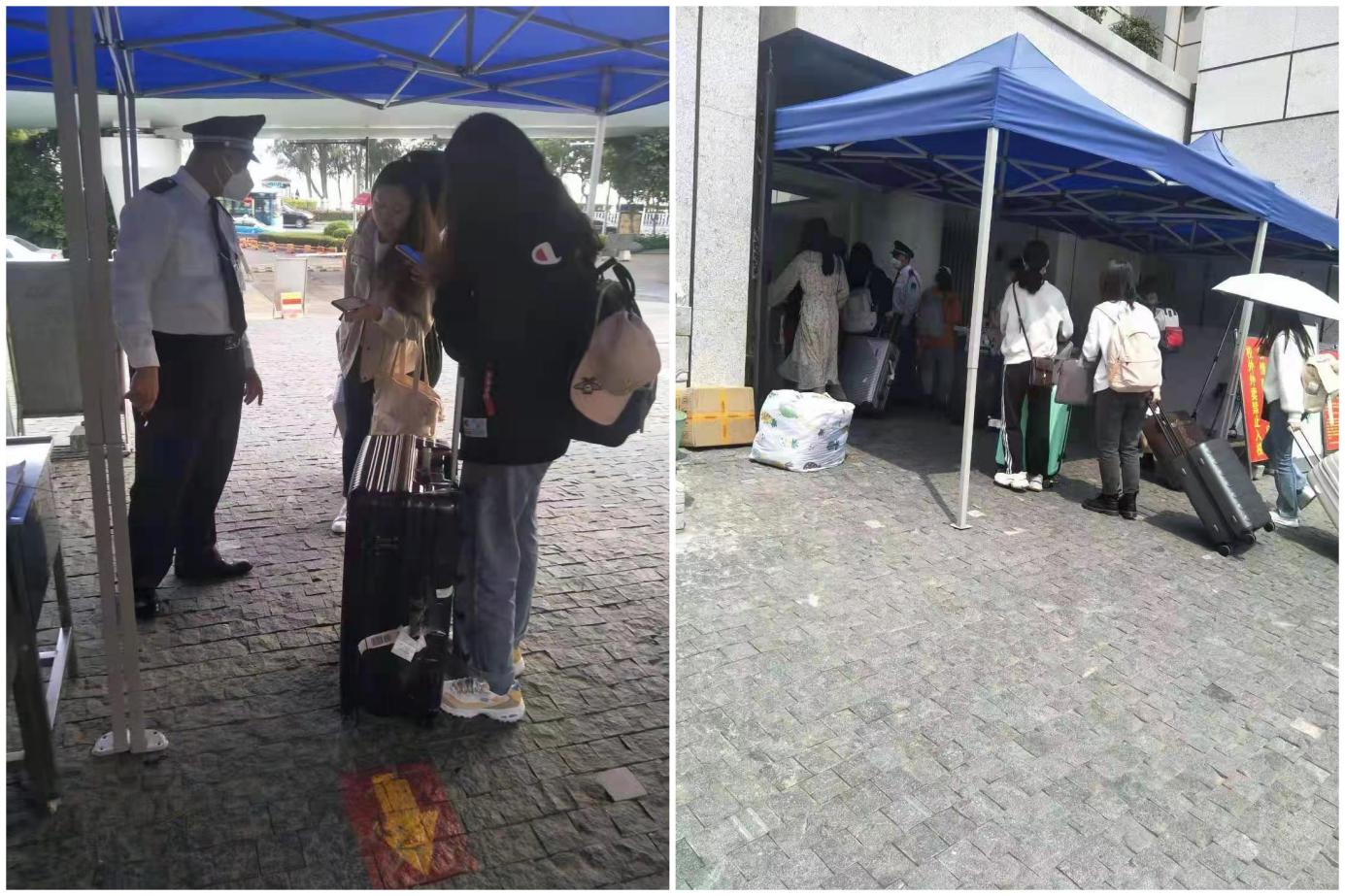 学生返校期间,校门安防人员对入校学生进行体温检测、查看其健康码及行程码,宿舍安防人员检测入住学生体温、登记返校信息,大家齐心协力,保障了学生有序返校。