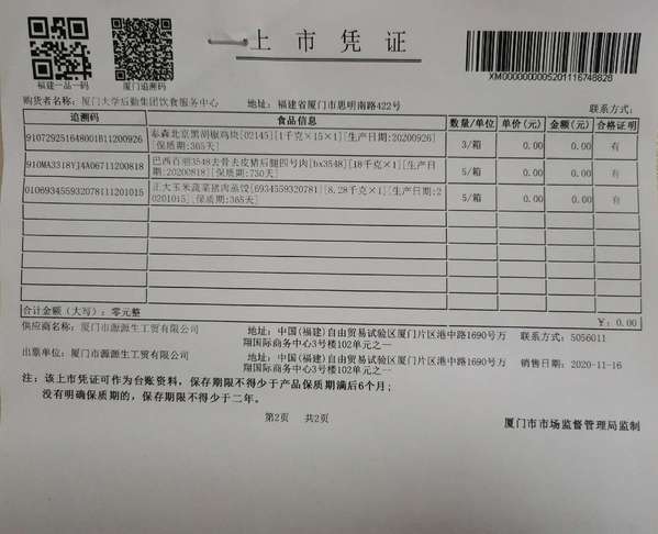 核对该批货物在厦门市食品安全信息系统开具的上市凭证。