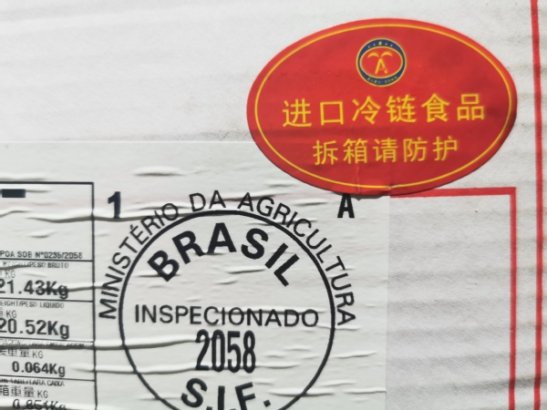 之后张贴由饮食服务中心专门制作的“进口冷链食品”标识,提醒相关验收人员做好拆箱防护。