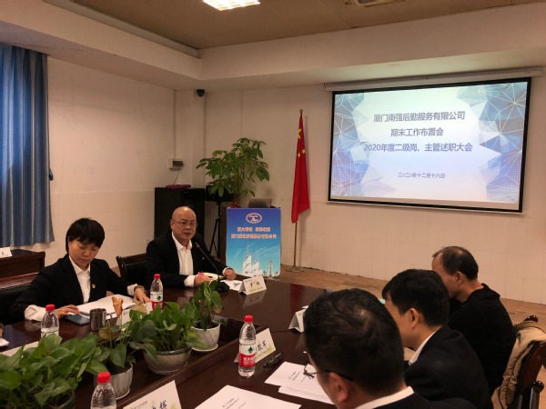 12月18日下午,厦门南强后勤服务有限公司召开期末工作布置会及2020年度二级岗、经理主管述职大会,集团副总经理陈有亮,公司总经理罗阳等60余名管理骨干参加了会议。