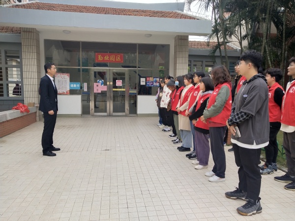 12月9日,创意与创新学院辅导员带领22名学生志愿者在勤业1-2园区集合。漳州校区物业部经理黄进来在活动开始前的讲话中指出了后勤体验日活动的目的和意义,并介绍学生园区概况及岗位职责,对学生志愿者进行分工。
