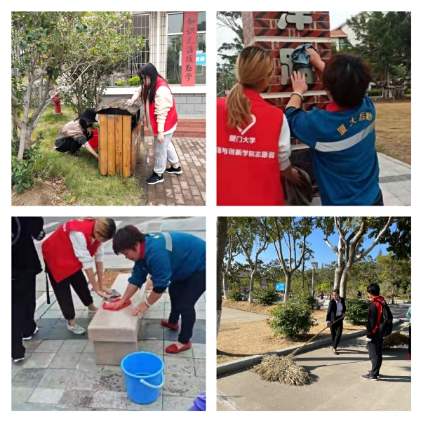 高校后勤是在校生最好的劳动体验平台。为加强校园精神文明建设,践行“三服务三育人”宗旨,弘扬志愿服务精神,漳州校区物业部携手创意与创新学院志愿者开展“勤业赋能,共迎百年之走进后勤”系列活动。此次活动旨在通过多岗位的劳动体验,帮助青年学子在生活实践中增强劳动光荣意识,培养吃苦耐劳的精神。本次活动为期一周,学生志愿者在这一周的时间里分批次体验保洁岗位、绿化养护岗位、道路环卫岗位等。