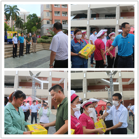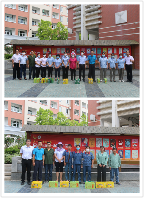 7月23日上午,漳州校区服务办党支部在北区餐厅门口组织慰问高温岗位员工,对年初以来一直坚守在疫情防控第一线和入夏以来坚守高温岗位的员工表示诚挚慰问和衷心感谢,将学校和集团的问候和关心传达至每一位员工,并送上了防暑降温的饮料,漳州校区服务办各部门员工代表参加了此次活动。