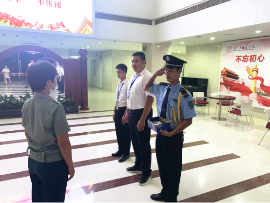 7月31日下午4:00,在成义楼李光前、陈爱礼伉俪雕像前,医学院副院长谢莉萍、陈老师、吴老师,翔安校区服务办代表,公司副总经理吕楠鑫与部分翔安校区物业部员工共同见证了医学院物业服务团队进场仪式。仪式上谢副院长欣喜地表示这场仪式充分展现了南强物业员工朝气蓬勃的精神面貌,相信能南强物业定能不负重托,在今后的日子里与医学院相互支持,携手共创美好未来。