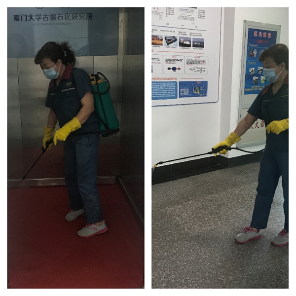 对厦门大学古雷石化研究院揭牌仪式现场进行消毒