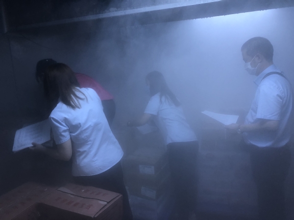 中心根据该管理办法,迅速行动,开展食品安全和防控工作自查,特别是对冷冻库和冷链食品进行专项排查。检查内容主要包括冷冻库环境是否符合要求,进口冻品的厂号、批次和报关单是否一致,冻品是否在保质期内等。
