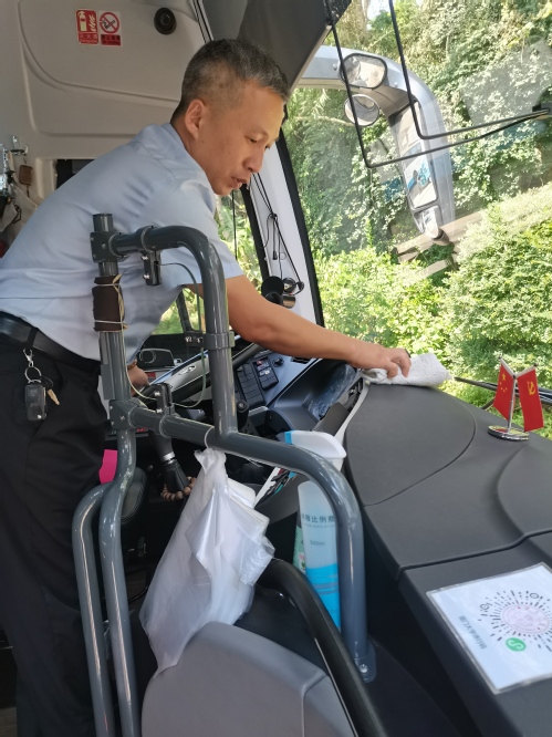 在疫情严重、各项工作陆续部署的时候,郭志强积极配合学校、集团政策,反应迅速,肩负起为乘车教职员工测量体温的工作。他耐心地为每一位乘车老师进行体温检测,温馨地提示每一位乘车老师佩戴口罩;途中时常提醒老师们做好个人防护;完成每一趟任务后,他严格落实“每趟消毒,每班通风”,为一车师生员工提供整洁安全的乘车环境。