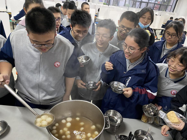 餐厅积极发挥服务育人、环境育人、劳动育人的职能,将餐厅打造成双十中学所需要的劳动教育阵地。通过氛围营造,积极宣传习近平总书记“节约粮食、杜绝浪费”重要工作指示,并通过饮食文化、社会主义价值观、营养健康等广告宣教,引领绿色节约的餐饮新风尚;在传统节日,如元宵节、端午节、中秋节、冬至等期间,通过与师生互动、教授美食技巧的同时,让学生既感受到中华饮食文化的魅力,也亲自体验到劳动收获的乐趣,让传统节日体现时代性、富有仪式感、充满生活味;尤其在中高考等重大供餐保障服务期间,落实公司创设多主题赋能减压活动,激发学生迎考斗志,让学生与教职工在参与餐饮文化活动中抒发内心情感,坚定文化自信,产生文化共鸣,激励师生员工决胜中高考,保持只争朝夕、不负韶华的奋进姿态。