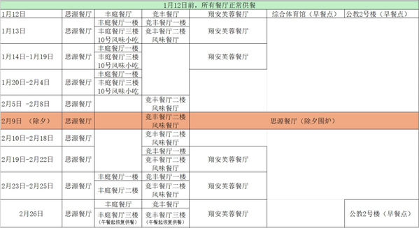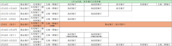 餐厅供餐安排: