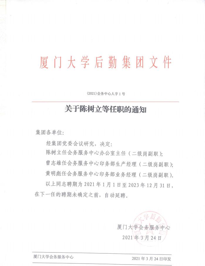 上一篇:关于南强后勤服务有限公司林忠辉等任职的通知