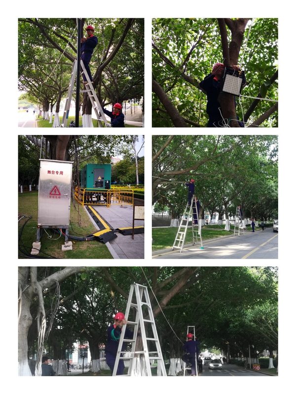 元旦假期期间进行舞会彩灯带布置及临时供电设备安装准备