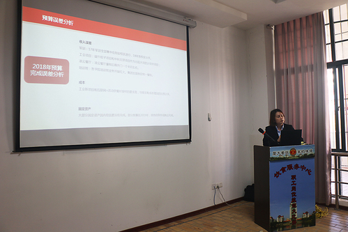 各部门汇报人员结合PPT演示说明,汇报2018年度预算执行情况、2019年度预算编制依据及各类指标。