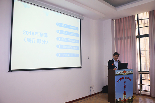 11月29日,饮食服务中心召开2019年度预算说明会,分管领导陈有亮,集团财务部经理游前斌、副经理吴爱云,饮食服务中心主任、副主任,全体二级岗及以上人员参会。