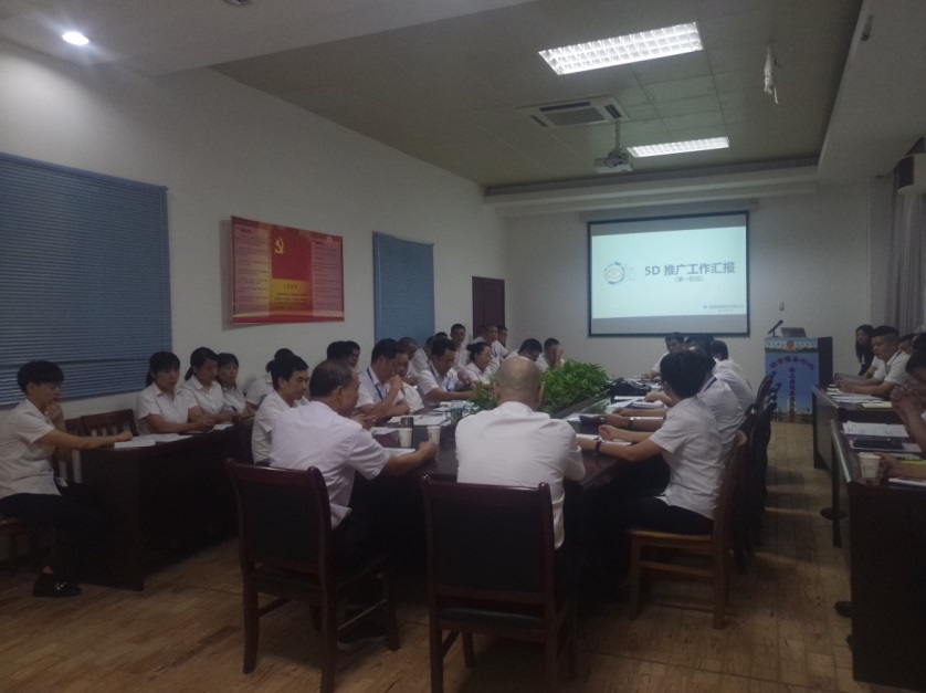 随后,公司安全品控部汇报了“5D”管理体系在餐厅推广的进展情况,餐厅经理分享了“5D”推行前后对比的经验和体会。