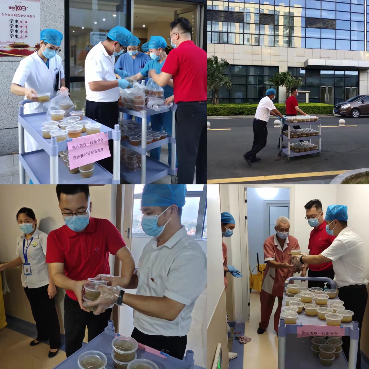 翔安医院后勤处管理员与餐厅经理为医务人员送绿豆汤