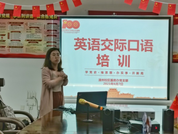当前,随着全球新冠肺炎疫情逐步得到有效控制,两个学院的外教将会陆续到岗。为提升员工在日常提供后勤服务的过程中的英语交际口语水平,增强后勤服务保障能力,漳州校区服务办党支部切实学党史、办实事,依托集团党委和集团人力资源部,在校区组织开设英语交际口语培训。