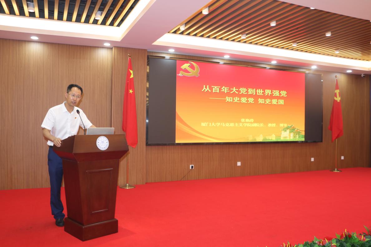 表彰大会结束后,还邀请马克思主义学院副院长、教授、博导张艳涛为大家作了《从百年大党到世界强党 ——知史爱党 知史爱国》专题讲座。