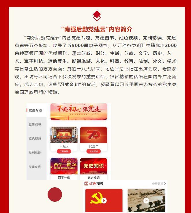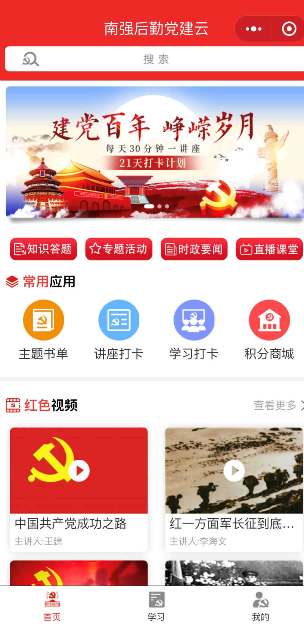 “南强后勤党建云”小程序携优质红色图书、红色视频以及各类活动平台助力全民大学习,时刻保持奋发有为的精神状态、真抓实干的良好作风,齐心协力、开拓进取,迎接党的百年华诞。