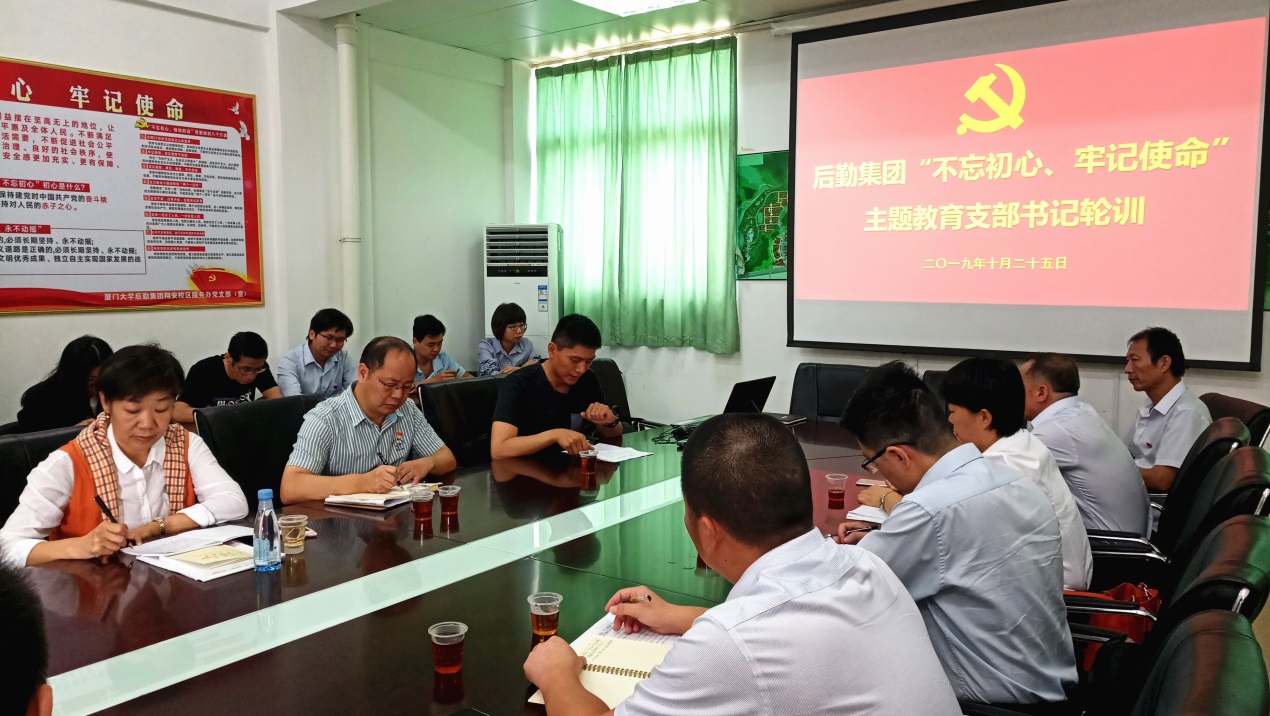 为进一步教育党支部书记领悟初心使命,坚定理想信念,增强“四个意识”、坚定“四个自信”、做到“两个维护”,帮助党支部书记提高组织本支部党员开展主题教育、做好本职工作的能力,后勤集团开展“不忘初心、牢记使命”主题教育支部书记、支部委员轮训,为期2天半。