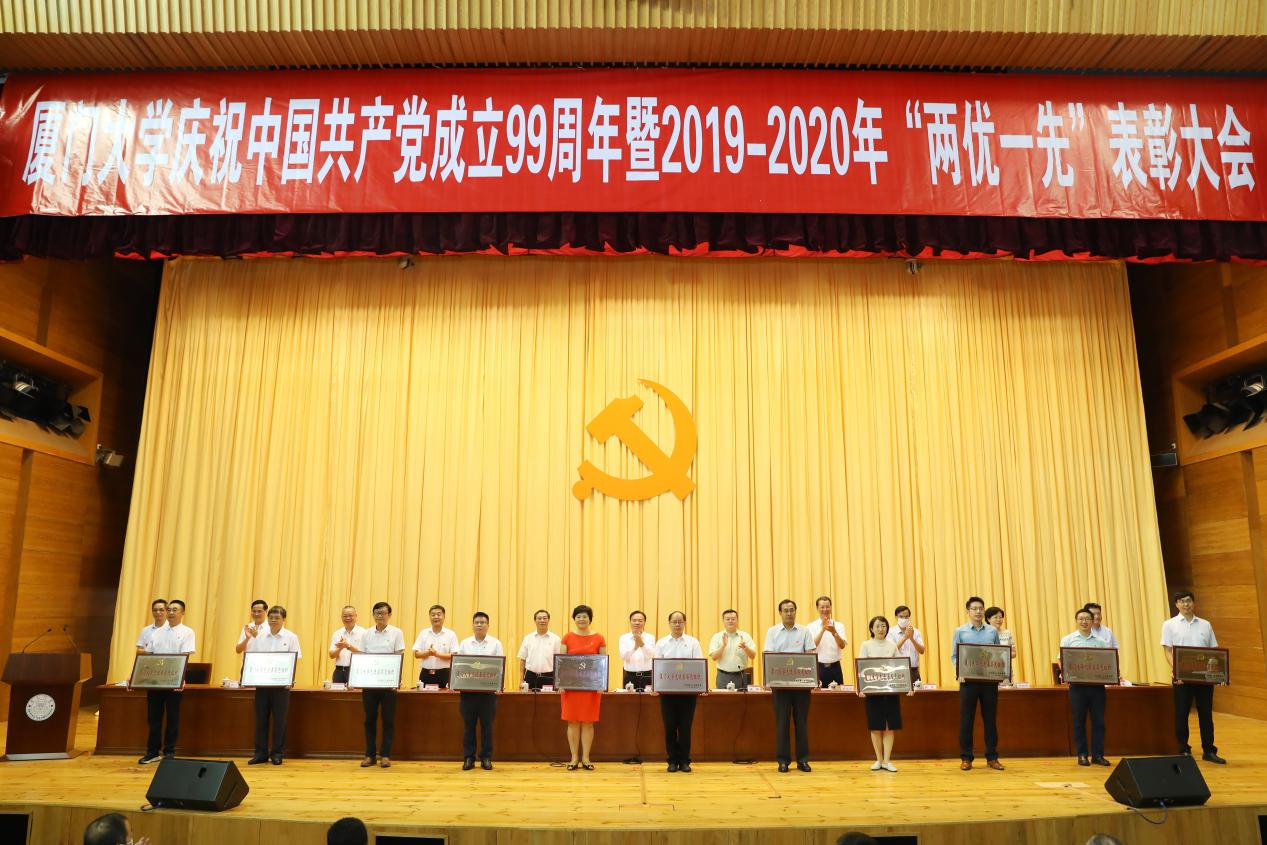 7月1日下午,在厦门大学庆祝中国共产党成立99周年暨2019-2020年“两优一先”表彰大会上,集团党委荣获“先进基层党组织”称号,集团物业党支部书记林振勇荣获“优秀党务工作者”称号,朱英广、林佳德、林洁三位党员荣获“优秀共产党员”称号。集团党委委员、团委书记、支部书记、党员代表在集团分会场观看会议直播。