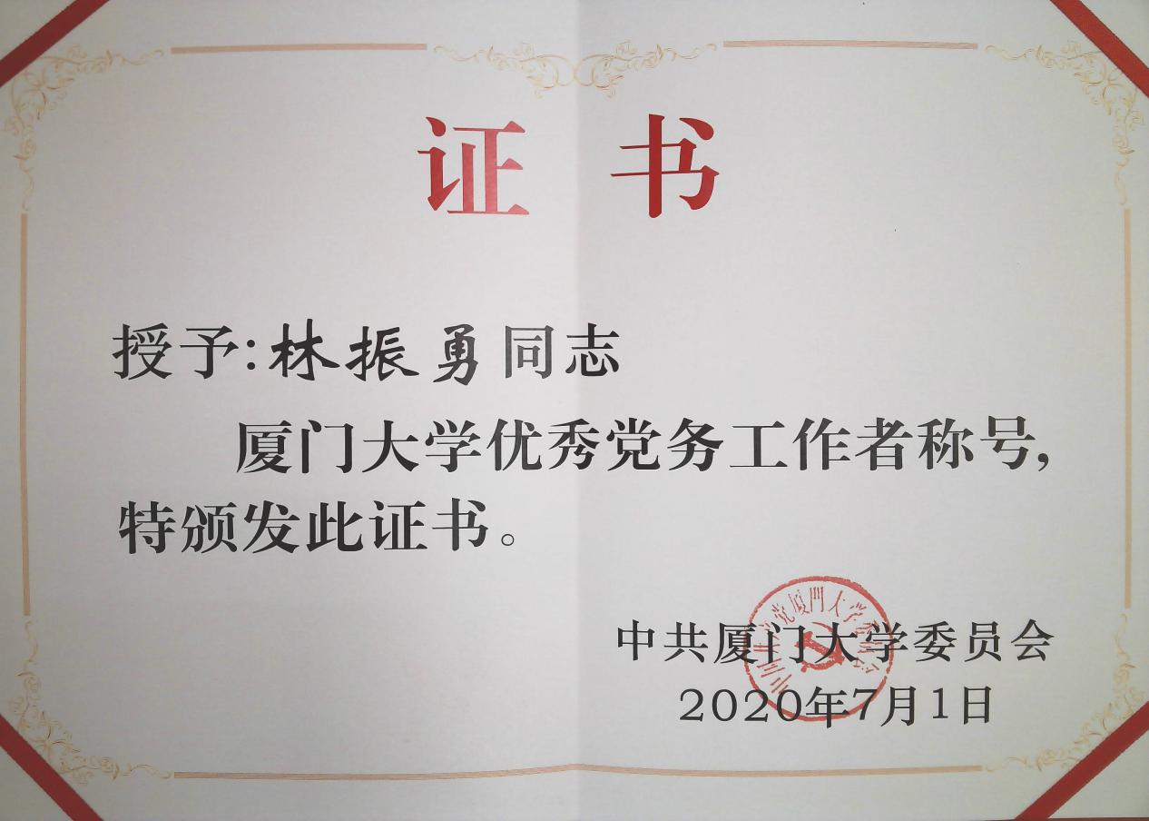 物业党支部书记林振勇荣获“优秀党务工作者”称号