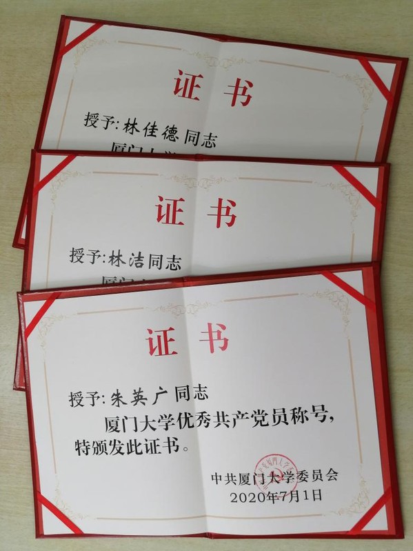 朱英广、林佳德、林洁三位同志荣获“优秀共产党员”称号