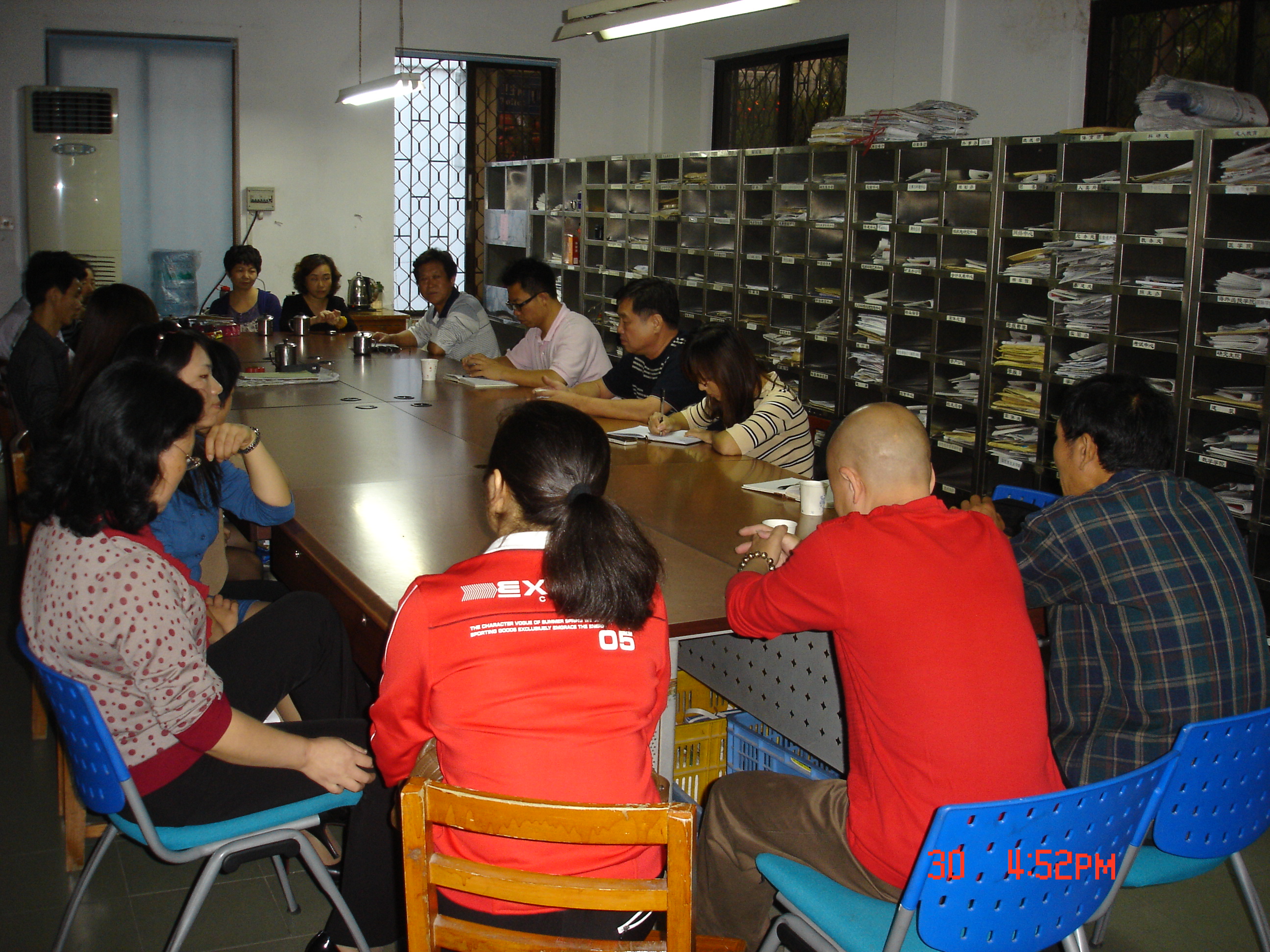 11月30日下午5:00,学生公寓与环境服务中心主任林三阳、副主任张建波及办公室主任叶晓真一行三人到中心邮政服务部,就邮政服务部创先争优活动示范窗口的设立召开部门职工动员会议,作出相关工作安排,明确创先争优窗口服务活动工作要求。