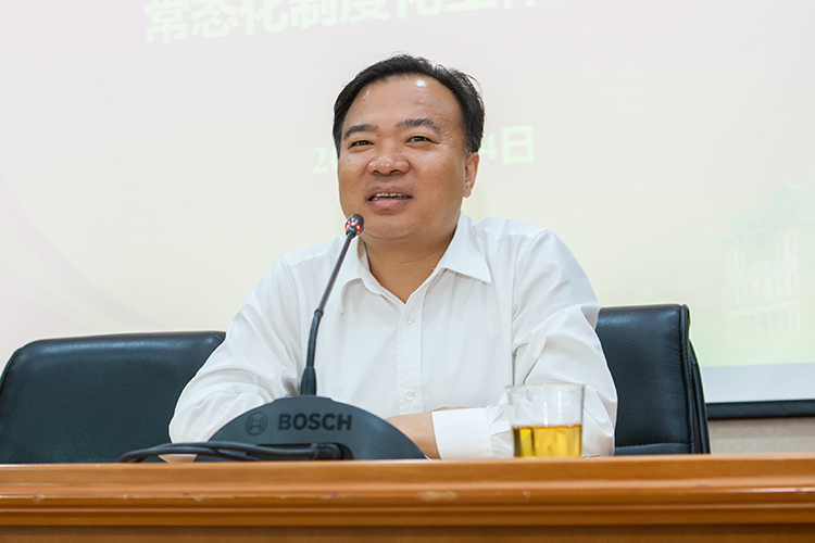 李建发传达了习近平总书记的重要指示、中央《关于推进“两学一做”学习教育常态化制度化的意见》以及中央推进“两学一做”学习教育常态化制度化工作座谈会精神,着重从基本内容、主要措施、组织领导等三个方面解读了《中共厦门大学委员会关于推进“两学一做”学习教育常态化制度化的实施方案》,就推进学校“两学一做”学习教育常态化制度化做了工作部署。他强调,一要坚持领导干部率先垂范,各级领导干部要自觉地把讲政治贯穿于日常工作生活全过程、贯穿于党性锻炼全过程,带头学习,带头做合格党员,密切联系群众,切实改进作风。二要发挥基层党支部主体作用,把思想政治工作落到支部,把从严教育管理党员落到支部,把群众工作落到支部。选优配强党支部书记,落实党支部工作考核评价机制,建立党支部工作经常性督查指导机制。三要严格落实“三会一课”等基本制度,强化“三会一课”的思想教育功能,突出政治学习和教育,突出党性锻炼。要把个人自学与集中学习结合起来,体现不同党员群体特点,健全主题党日活动制度。各基层党委(党总支)要做好经常学、长期学的部署安排,明确具体的学习内容、学习任务和学习方式,做到年度有安排、月月有计划。四要联系思想工作实际经常查找解决问题,坚持学做结合,突出针对性,敢于直面问题,把查找解决问题作为“两学一做”学习教育的规定要求,要结合中央巡视组对我校的反馈意见,做好整改落实工作。要把党的组织生活作为查找和解决问题的重要途径,注意听取群众的意见和反映,抓早抓小、防微杜渐。五要立足岗位作贡献,针对不同群体党员实际情况,提出党员发挥作用的具体要求,教育引导党员铭记党员身份,积极为党工作、履职尽责。