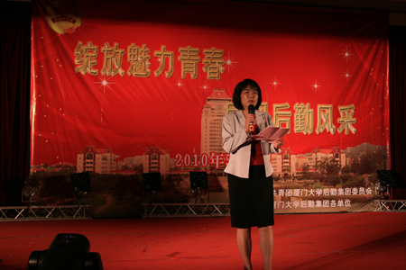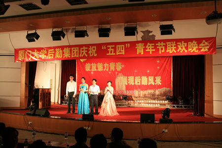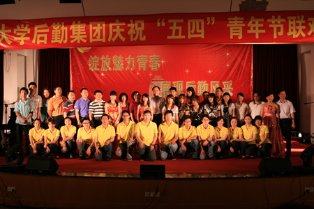 为庆祝“五四”运动91周年和中国共青团建团88周年,在后勤集团团委成立一周年的日子里,后勤集团“五四”青年节联欢晚会于当晚拉开帷幕。校团委副书记陈雪玲,后勤集团总经理谢银辉、党总支副书记庄惠美、副总经理郑庆喜等集团领导班子成员,集团一级岗位、二级岗位管理人员,各党支部书记,集团部门工会、妇委会、团委委员,全体团员,集团员工以及部分师生兴致勃勃地观看了演出。