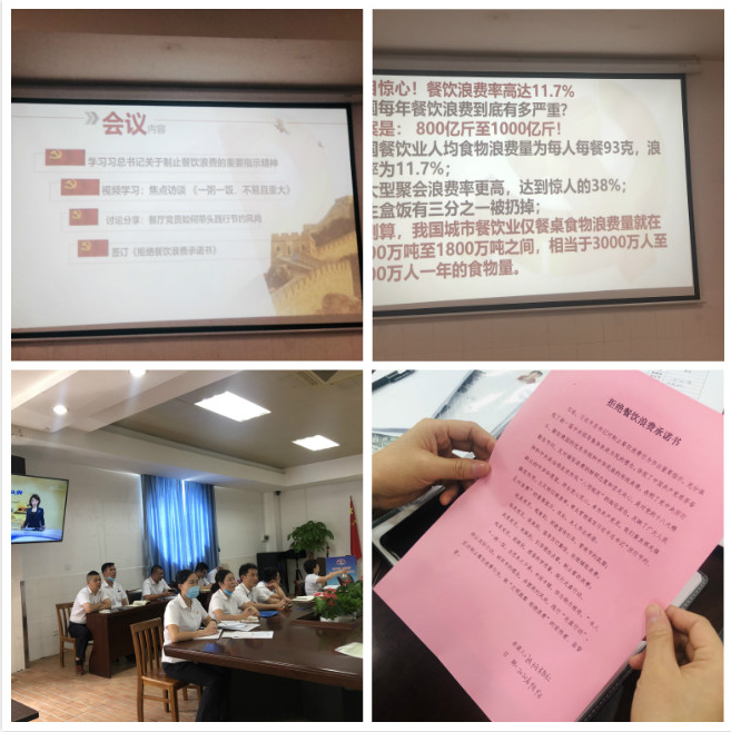 最后,全体党员宣读并签署《拒绝餐饮浪费承诺书》,承诺在餐饮工作和个人生活中坚决贯彻习近平总书记制止餐饮浪费的指示精神,谨记“勤俭是我们的传家宝,什么时候都不能丢”,始终如一,切实以党员先锋模范作用带动员工和身边人厉行节约,反对浪费。