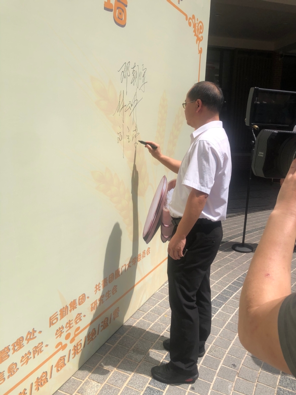 随后,“厉行节约 反对浪费”签名仪式正式开始,三个校区的参会人员及老师同学们纷纷在签名墙上郑重签下自己的名字,庄严承诺做勤俭节约的倡导者、宣传者、实践者和推动者。
