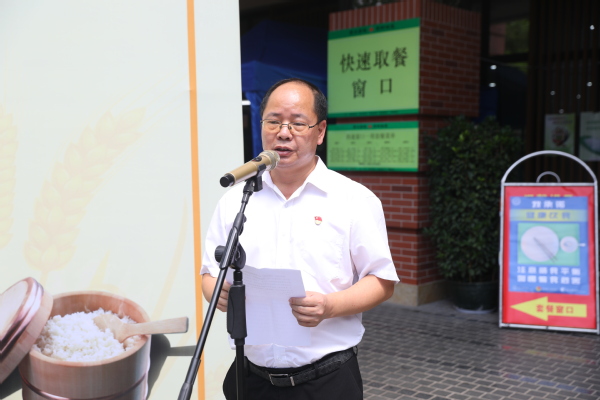 资产与后勤事务管理处副处长王沈扬与后勤集团党委书记刘立荣分别致辞,号召全校师生积极响应总书记号召,珍惜粮食,传承节俭美德;理性消费,拒绝攀比浪费;按需点餐、按量取食,以自己的实际行动表达对“厉行节约 反对浪费”的响应与支持,争当餐餐光盘的厦大人。
