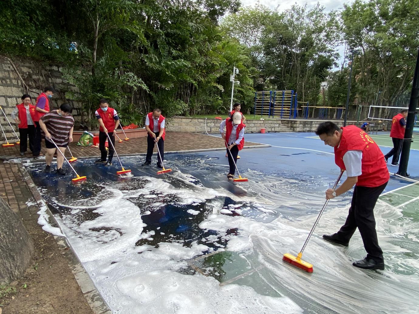 除了开展学习活动,6月10日上午,公寓党支部还组织开展了“固定党日+”清洗东苑排球场活动,旨在通过义务劳动增强党支部的凝聚力,强化党员干部的奉献意识和引领示范作用,增强服务师生、奉献学校的宗旨意识,践行弘扬劳动光荣的优良传统。